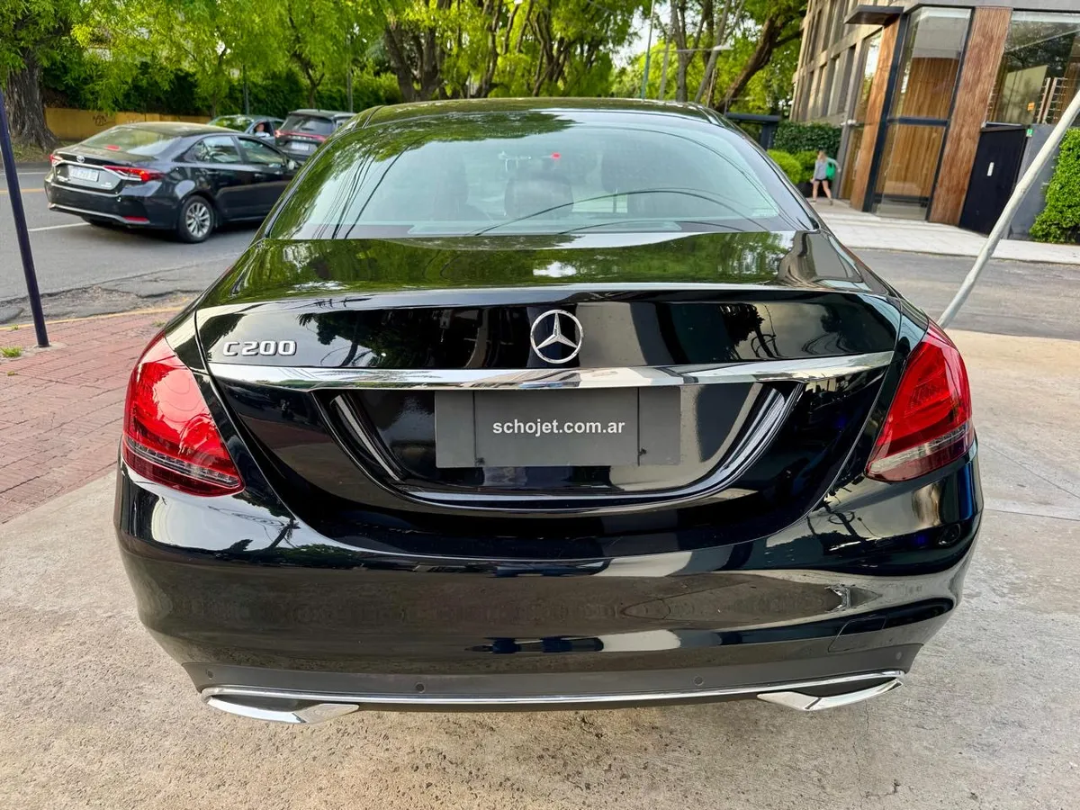 Mercedes-benz C200 Avantgarde Motorización y Transmisión: Motor: 4 cilindros en línea, turbo Cilindrada: 1.991 cm³ Potencia: 204 hp Torque: 300 Nm Caja: automática 9G-TRONIC de 9 marchas Tracción: trasera Prestaciones: Aceleración 0–100 km/h: 7,1 s Velocidad máxima: 245 km/h Consumo combinado estimado: 6,5-7,2 L/100 km Dimensiones y Capacidades: Largo: 4.686 mm Ancho: 1.810 mm Alto: 1.442 mm Distancia entre ejes: 2.840 mm Peso en orden de marcha: ~1.655 kg Volumen del baúl: 435 L Tanque de combustible: 66 L Equipamiento Destacado: Llantas de aleación Faros LED Techo corredizo Tablero digital Sistema de modos de conducción (Dynamic Select) Sistema multimedia con pantalla central Sensor de lluvia Climatizador automático Volante multifunción en cuero Seguridad: ABS con distribución electrónica de frenado Control de estabilidad y tracción Airbags frontales, laterales y de rodilla Anclajes ISOFIX para sillas infantiles Sensor de estacionamiento Prestación de freno autónomo (Active Brake Assist) SCHOJETAUTOS