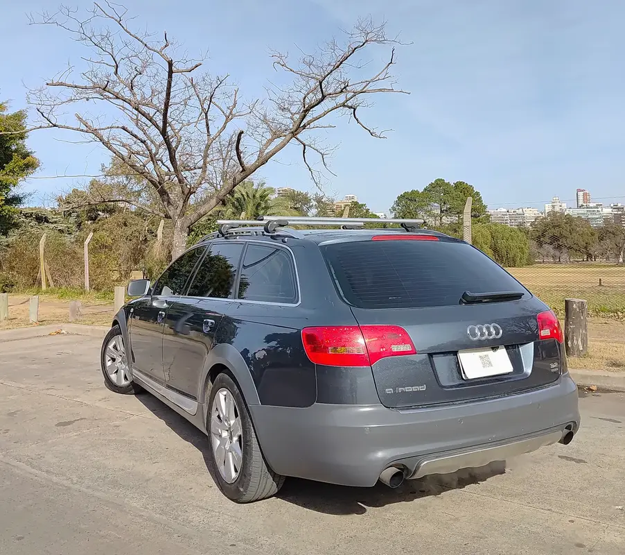 E T E R N A U T O S Audi A6 Allroad 3.2 V6 Quattro modelo 2009, en excelente estado general. Segunda mano. 122.000 km reales, con mantenimiento al día. Vehículo premium, ideal para quienes buscan confort, potencia y versatilidad, con la reconocida tracción integral quattro de Audi. Mecánica: Motor 3.2 litros V6 FSI (inyección directa) Potencia: 265 CV Caja automática Tiptronic de 6 velocidades Tracción integral permanente quattro Suspensión neumática regulable (modos: comfort / dynamic / allroad) Modo off-road y control de descenso Mantenimiento y mejoras recientes: Brazos de tren delantero nuevos 2 gomas nuevas Cambio de aceite y filtros 4 pulmones de suspensión neumática nuevos Compresor de suspensión neumática nuevo CarPlay instalado en pantalla original Cámara de retroceso incorporada Confort y tecnología: Tapizado de cuero original Asientos delanteros eléctricos y calefaccionados Climatizador automático trizona Techo solar panorámico eléctrico Volante multifunción Sistema multimedia MMI con pantalla a color Entrada auxiliar, CD, lector de tarjetas SD Sensores de estacionamiento delanteros y traseros Portón trasero eléctrico Control de velocidad crucero Iluminación ambiental interior Seguridad y exterior: Faros Bi-Xenón con lavafaros Llantas de aleación Audi originales Airbags frontales, laterales y de cortina Control de estabilidad (ESP) y tracción (ASR) Frenos ABS con EBD Barras de techo Espejo retrovisor interior antideslumbrante automático Segunda mano 122.000 km reales Se puede ver por San Isidro con cita previa