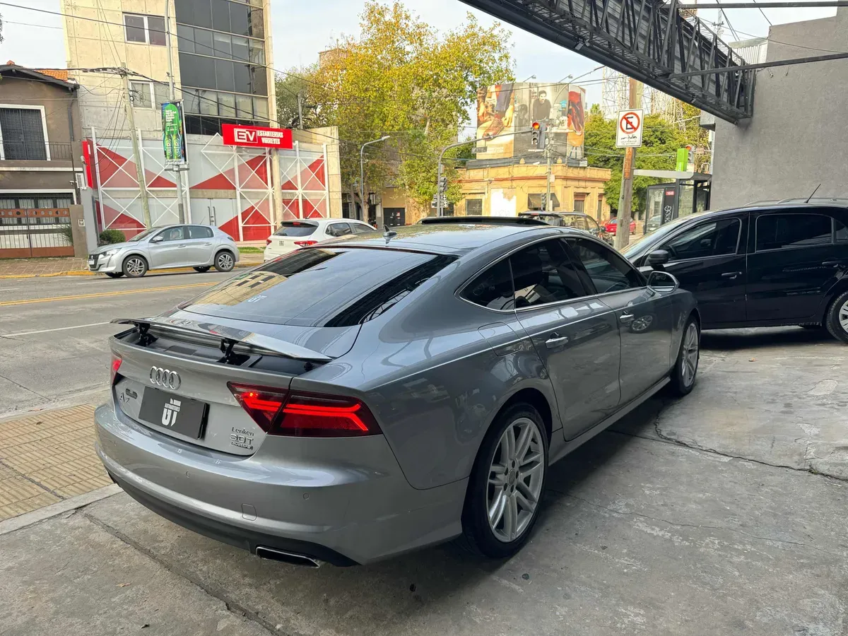 Audi a7 sportback 3.0 tfsi 333cv 2017 con 48.000kms. El vehículo es única mano y tiene sus services hechos de manera oficial. Último recién hecho. Vidrios con lámina de seguridad. El Precio publicado ya contempla que necesita un cambio de cubiertas. El vehículo de fábrica salió con varios agregados como por ejemplo: - Soft close en puertas - Head up display - Portón trastero eléctrico - Acceso comfort - Llantas R19 Se aceptan permutas << Somos una empresa familiar la cual tiene como principal objetivo brindar una experiencia de compra y venta distinguida. Todo nuestro equipo trabaja para que cada cliente tenga la mayor comodidad y tranquilidad posible durante todo el proceso comprando unidades de primera. >> << Al momento de tener un nuevo ingreso, nos ocupamos de llevar a cabo las revisiones que sean correspondientes y de que nuestro sector de gestoría se encargue de preparar la documentación para que la transferencia sea inmediata. Para la tranquilidad del cliente, se pude escanear y revisar ante cualquier especialista nuestras unidades. >> << Si bien damos la opción de presentar el tramite de traspaso de dominio de manera particular con el fin de evitarse gastos extra, nuestro equipo de gestores y grupo asegurador, se encuentran a entera disposición para lograr una compra rápida y totalmente prolija. >> << Los invitamos a leer nuestras reviews en Google y los esperamos en nuestro salon de ventas ubicado en La Lucila sobre Av Libertador ! >> Grupo Scotti —> Sucursal Gt Automotores