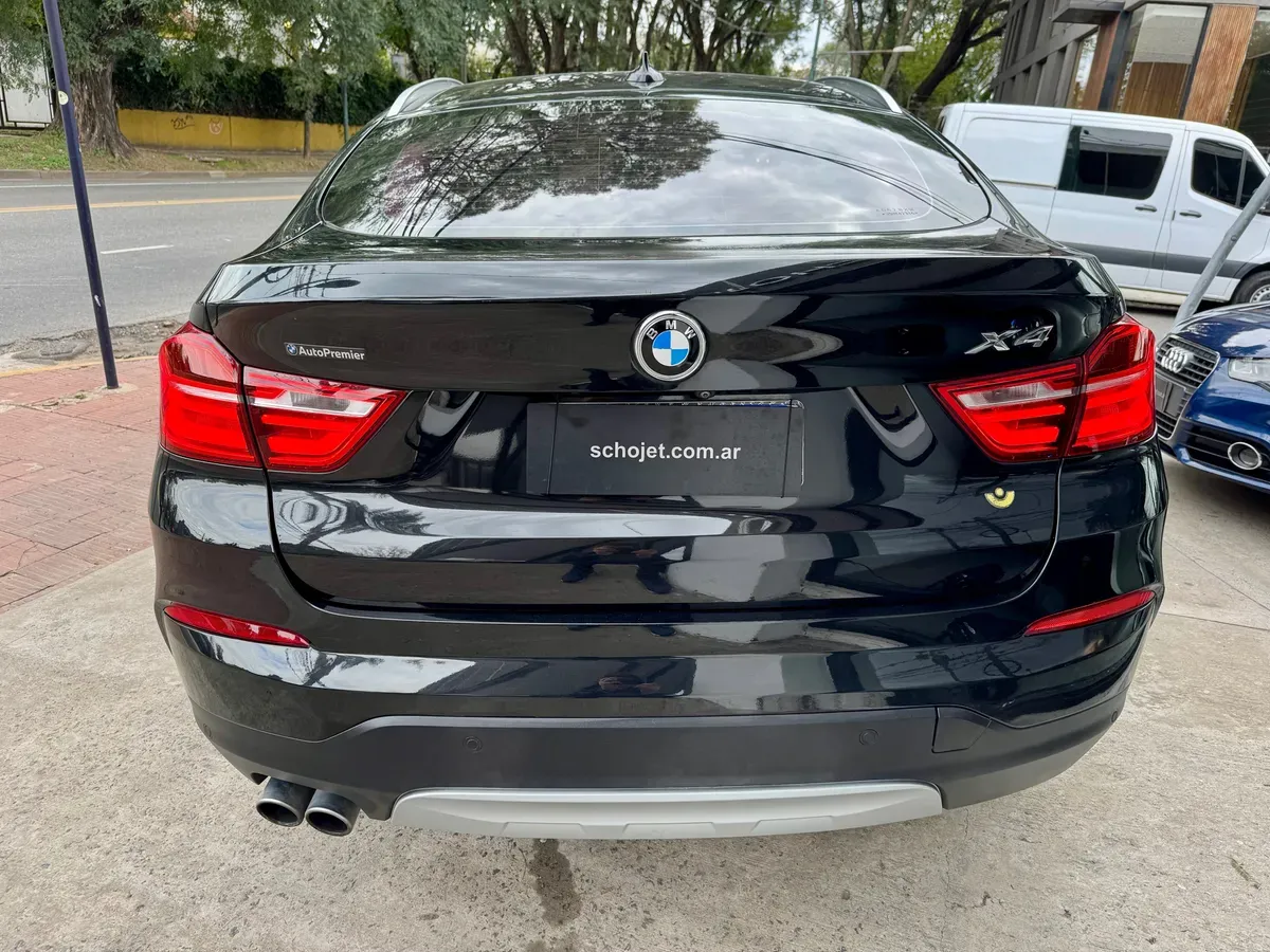 Bmw X4 2.0 Xdrive 28i Xline AGREGADOS: Carplay y cargador inalambrico MOTORIZACIÓN Y TRANSMISIÓN: Motor: 2.0 litros (1.997 cm3), 4 cilindros en línea, turbo TwinPower, inyección directa Potencia: 245 CV entre 5.000 y 6.500 rpm Torque: 350 Nm entre 1.250 y 4.800 rpm Transmisión: automática Steptronic de 8 velocidades, con modo secuencial Tracción: integral permanente xDrive Sistema Start/Stop: incorporado SUSPENSIÓN Y FRENOS: Suspensión delantera: independiente tipo paralelogramo deformable (McPherson) Suspensión trasera: independiente multibrazo Frenos delanteros: discos ventilados Frenos traseros: discos ventilados EQUIPAMIENTO DE SEGURIDAD: Airbags frontales para conductor y acompañante Airbags laterales delanteros Airbags de cortina delanteros y traseros Control de estabilidad Control de tracción Sistema antibloqueo de frenos Distribución electrónica de frenado Asistente de frenado de emergencia Control dinámico de frenado en curvas Asistente de arranque en pendiente Freno de estacionamiento eléctrico con función Auto Hold Sensores de estacionamiento delanteros y traseros Cámara de retroceso Anclajes ISOFIX para sillas infantiles EQUIPAMIENTO DESTACADO: Sistema de navegación con pantalla táctil de 8,8 pulgadas Sistema iDrive con controlador multifunción y reconocimiento de voz Climatizador automático bi-zona Tapizado en cuero Asientos delanteros deportivos con regulación eléctrica y memoria para conductor Volante deportivo multifunción revestido en cuero Espejo retrovisor interior electrocrómico Espejos exteriores eléctricos, calefaccionados y rebatibles Portón trasero con apertura y cierre eléctricos Acceso sin llave (Keyless Entry) y arranque por botón (Start/Stop) Computadora de a bordo con pantalla color Llantas de aleación de 19 pulgadas diseño exclusivo XLine Sensor de lluvia y encendido automático de luces Control de velocidad crucero con función de frenado Sistema de audio Hi-Fi con 9 parlantes y amplificador digital SCHOJETAUTOS