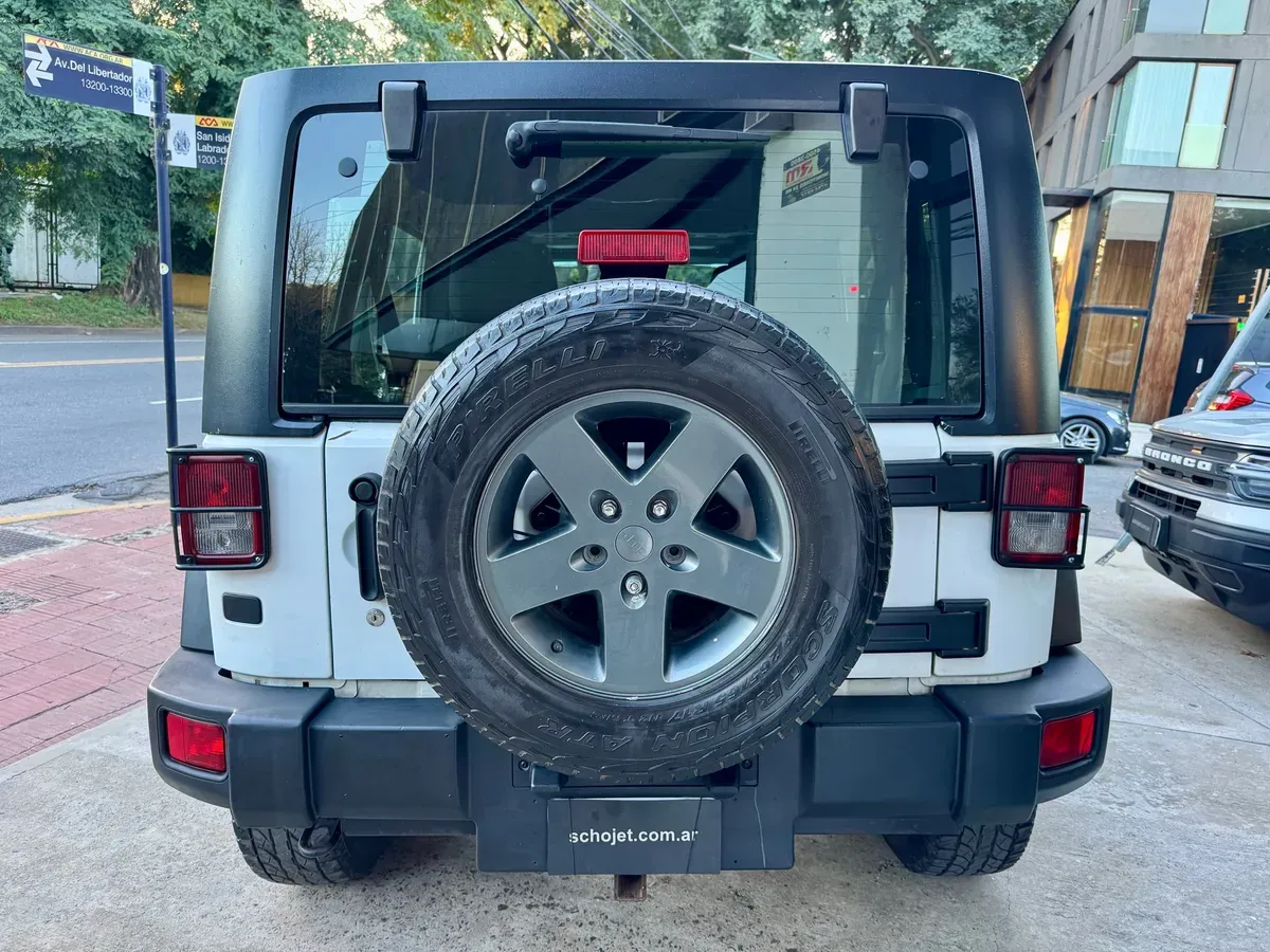 Jeep Wrangler Unlimited Sport 3.8 V6 AT 2011 Motorización y Prestaciones: Motor: Tipo: Gasolina, 6 cilindros en V (V6) Cilindrada: 3.778 cm3 Configuración: OHV, 12 válvulas Potencia máxima: 202 CV (151 kW) a 5.200 rpm Par máximo: 321 Nm a 4.000 rpm Transmisión: Tipo: Manual de 6 velocidades Tracción: Integral permanente Caja de transferencia: Con reductora Seguridad y Asistencias: Airbags: Frontales de doble etapa y laterales delanteros Control de estabilidad Control de tracción Sistema de monitoreo de presión de neumáticos Anclajes ISOFIX: Para asientos infantiles en plazas traseras. SCHOJETAUTOS