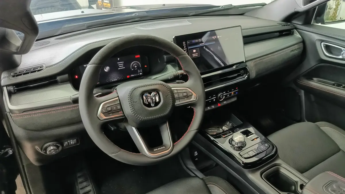 Presentamos la Nueva RAM RAMPAGE RT 2.0 Turbo 272Cv | 400 Nm 4x4 Características: Motorización - Motor Hurricane4 2.0 Turbo 272Cv | 400 Nm - Caja Automática de 9ta - Tracción 4x4 - Modo Sport Confort: - Climatizador Automático Bi-Zona - Asientos eléctricos con tapizado de cuero y alcántara - Encendido por botón (Sistema Keyless go) - Control crucero adaptativo Tecnología: - Instrumental Digital de 10'' - Central multimedia Uconnect de 12.3'' con Android Auto y Apple Carplay - Cargador de celular por inducción Ram Charger - Faros delanteros Multifunción LED con DRL - Sistema de sonido Harman Kardon Seguridad: - 7 Airbags (frontales, laterales y de rodilla) - Asistente de mantenimiento de carril - Detector de punto ciego - Sistema de mitigación de rolido