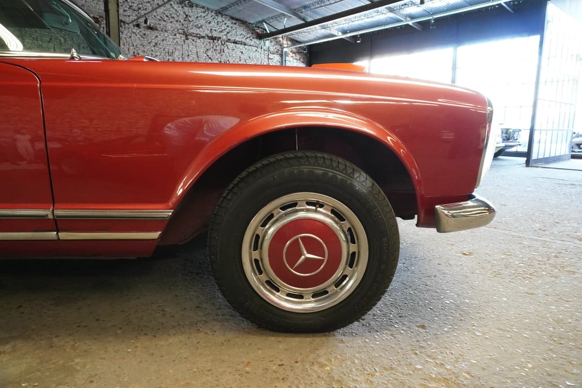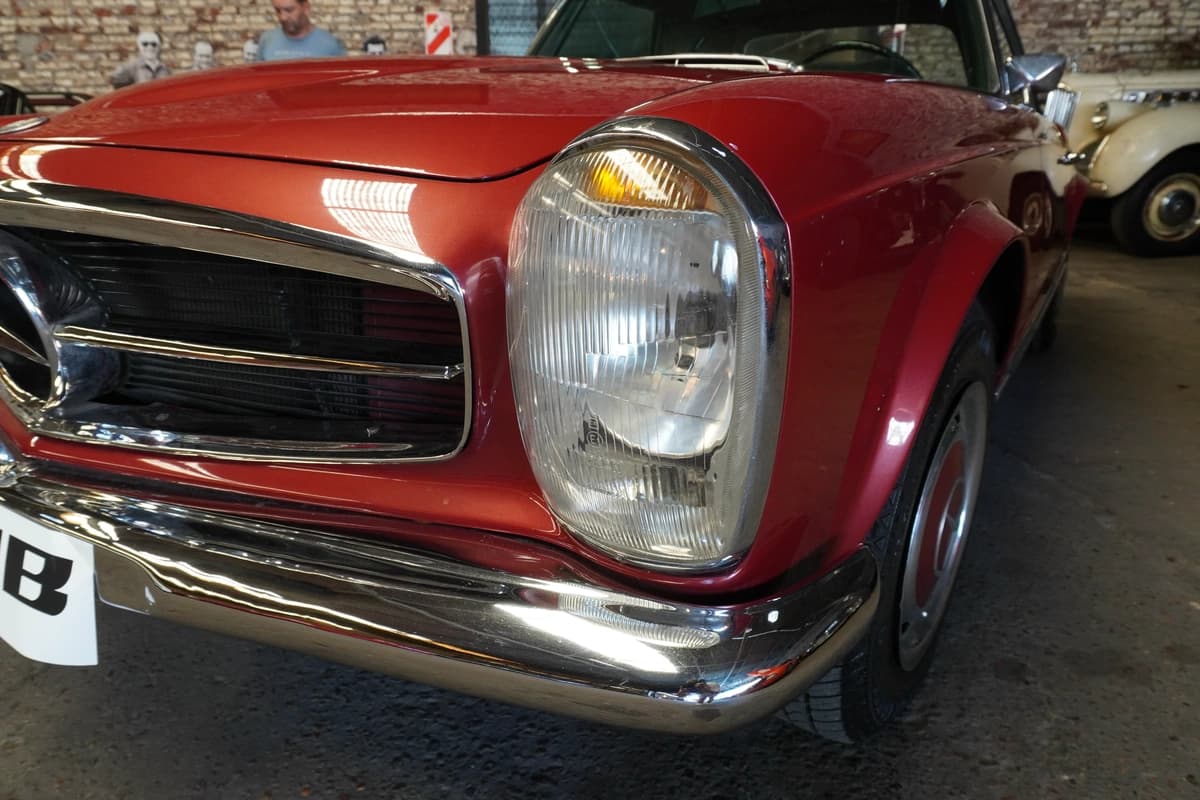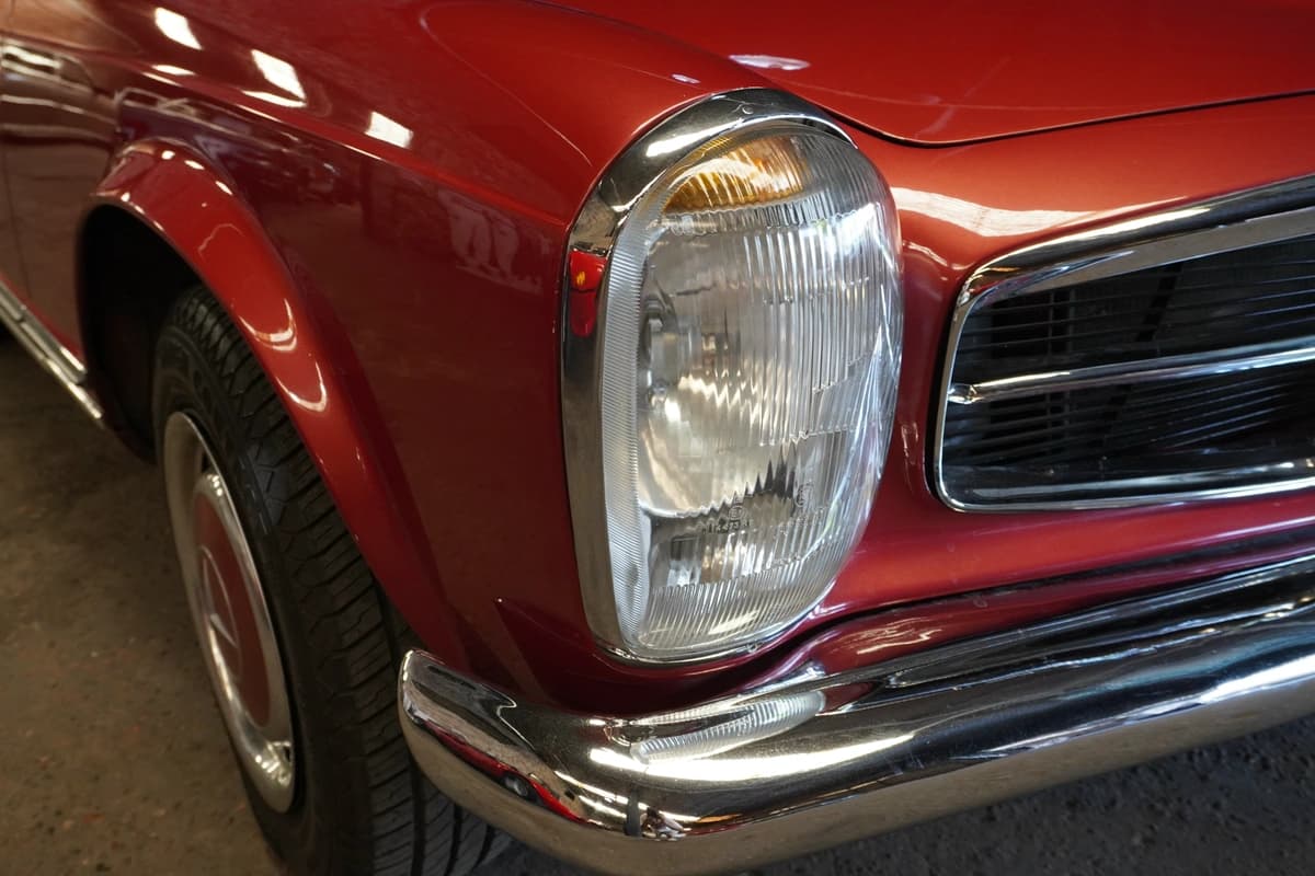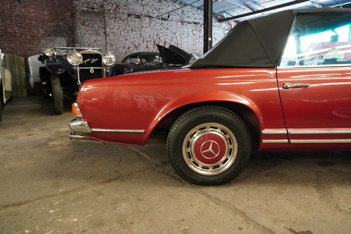La 280SL, introducida en 1967, representa la evolución final y más refinada de la serie W113. Incorporó el motor seis cilindros en línea de 2.8 litros, con inyección mecánica Bosch, que ofrecía mayor potencia y suavidad respecto a sus antecesores. Fue un modelo especialmente apreciado en mercados como Estados Unidos y Europa, y su llegada a Argentina fue siempre limitada, lo que vuelve a estos ejemplares particularmente escasos y valorados a nivel local.