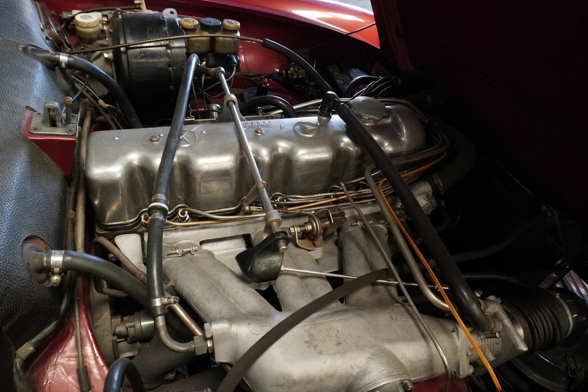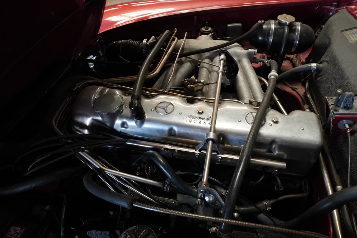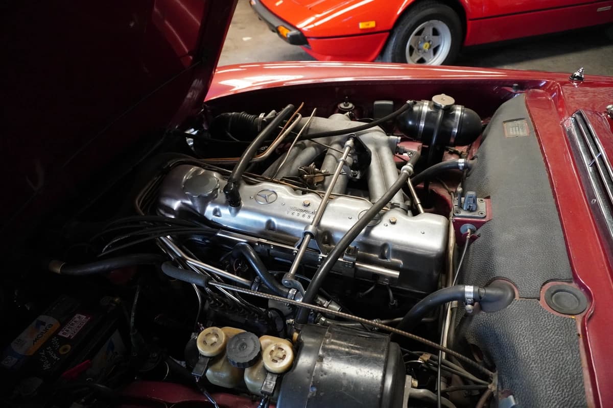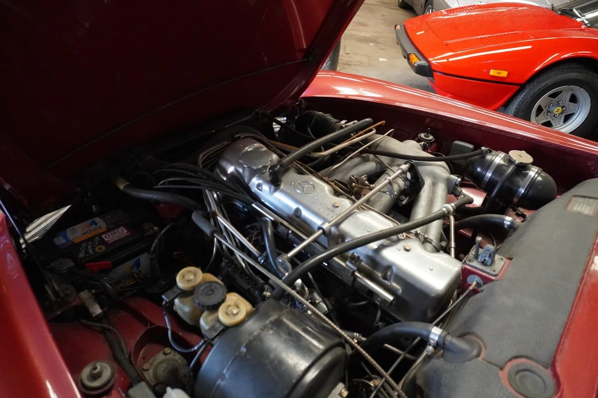 Desde el punto de vista mecánico, la 280 SL se destaca por su confiable seis cilindros en línea, motor reconocido por su funcionamiento suave, progresivo y robusto. Durante 2025 recibió un servicio general completo enfocado en el sistema de inyección, realizado en el único Bosch Classic Center de Argentina, un dato especialmente relevante para este tipo de vehículo y un fuerte respaldo en términos de mantenimiento especializado.