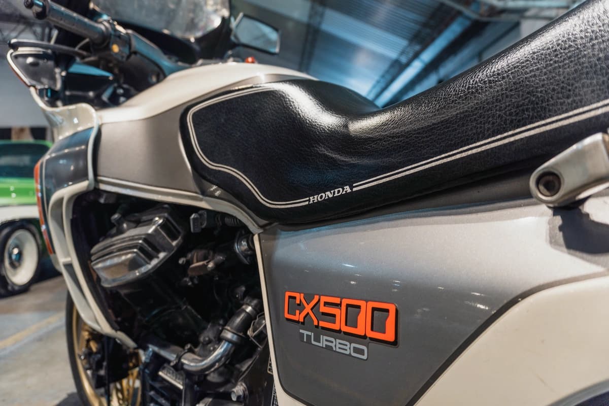 La estética de la CX500 Turbo es absolutamente de época: líneas angulares, cuerpo ancho y una identidad que no se parece a ninguna otra Honda. Esta moto mantiene todos sus elementos auténticos, sin modificaciones ni intervenciones visibles. No hay trabajos de pintura ni restauraciones parciales, algo poco común en un modelo que ya tiene más de cuatro décadas.