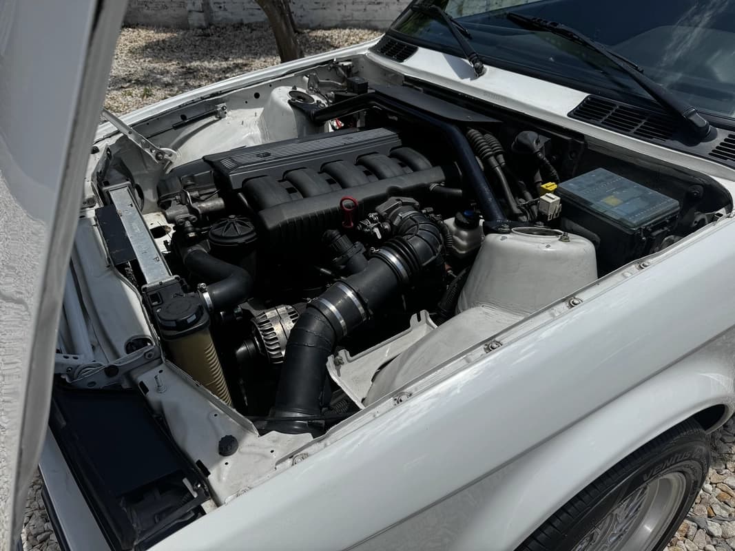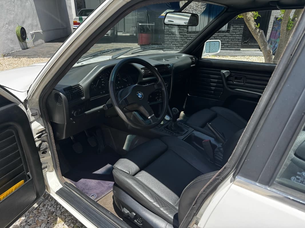 Mecánicamente, esta unidad recibió un swap completo de motor, caja, diferencial y frenos provenientes de un BMW 325i E36, logrando un salto notable en prestaciones respecto a un E30 estándar. A esto se suma una caja de dirección de BMW Z3, que mejora sensiblemente la precisión del manejo, y un conjunto de suspensión recientemente puesto a punto, pensado para un uso dinámico pero utilizable en calle.