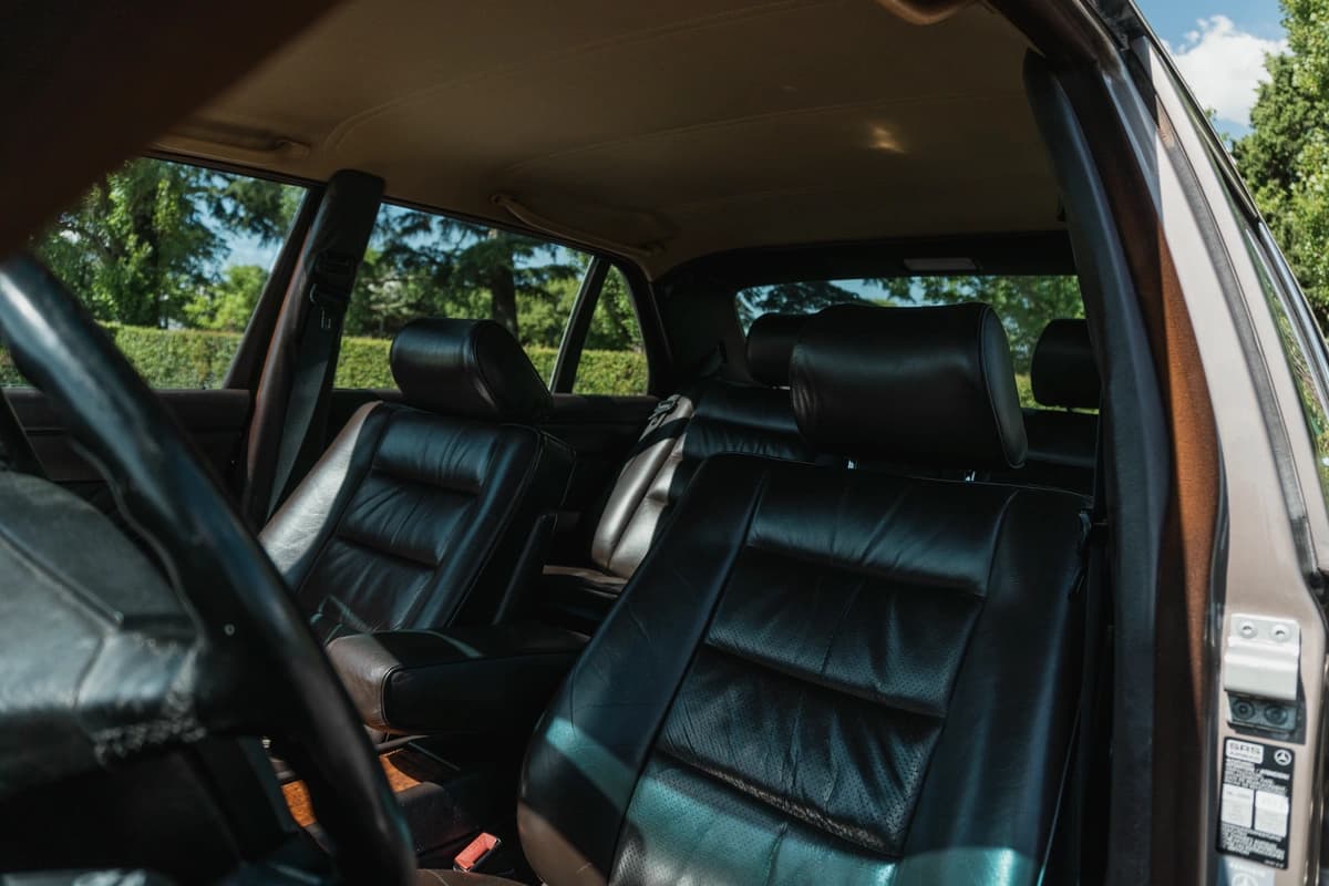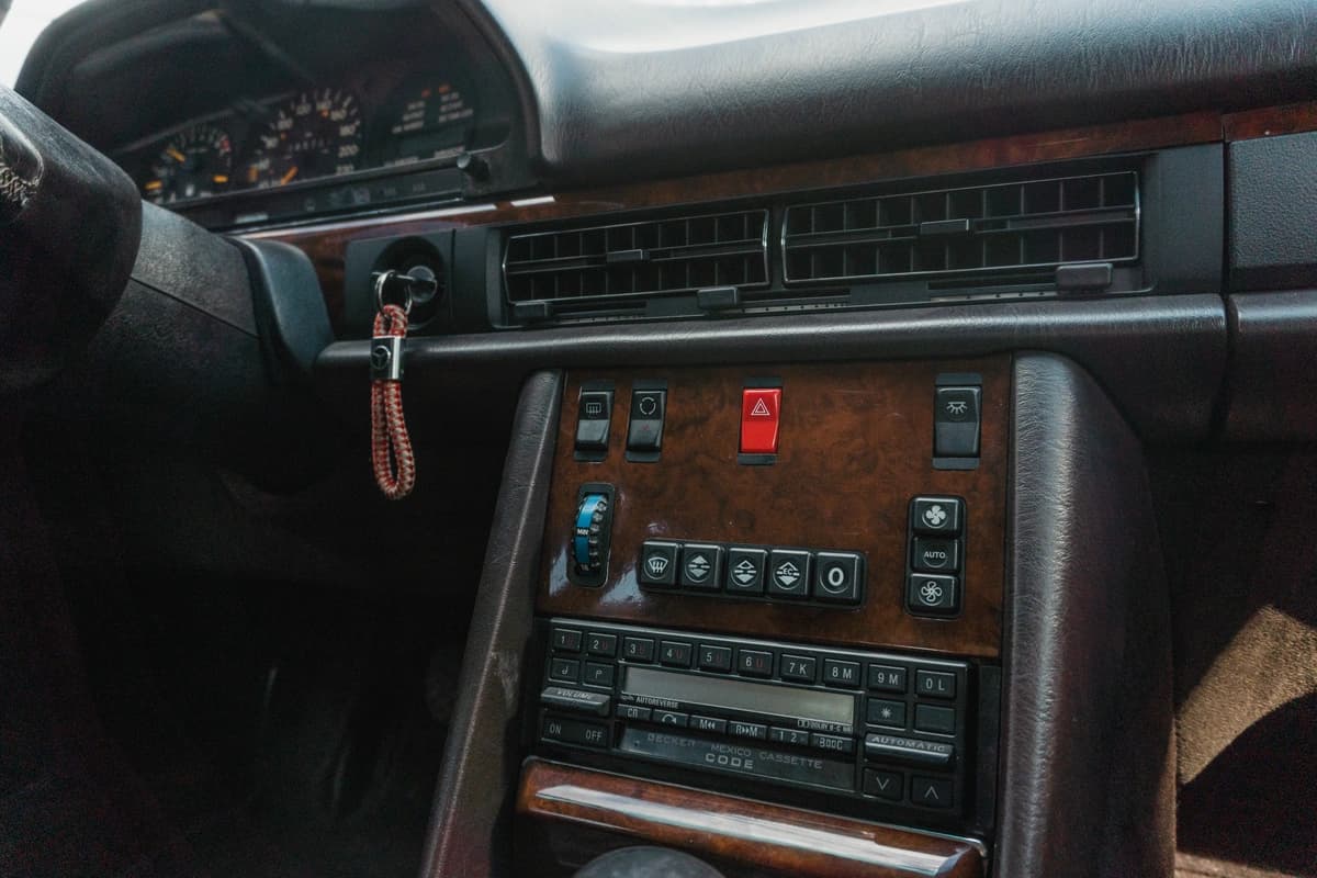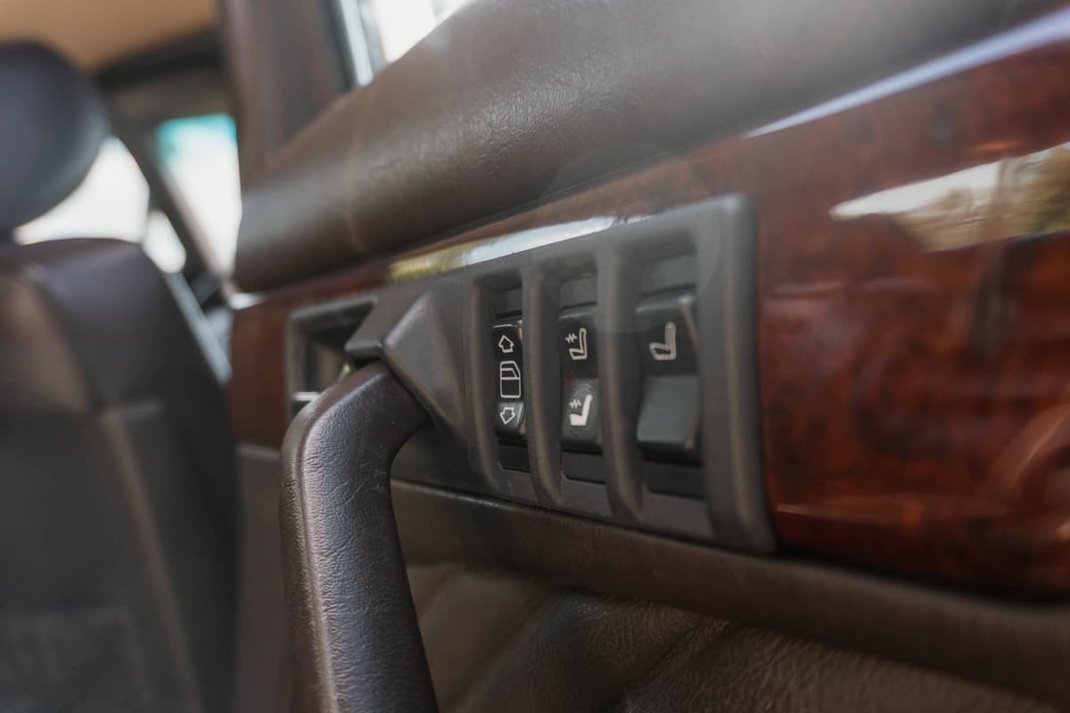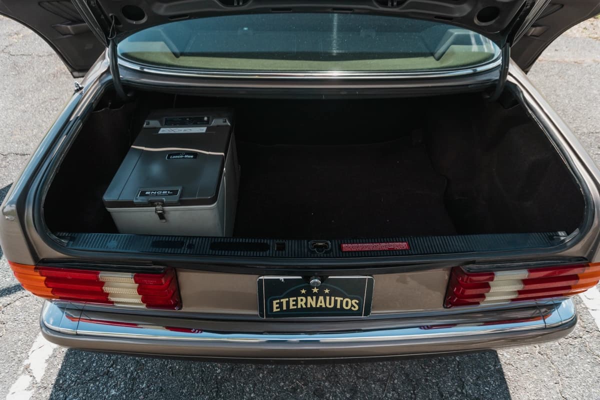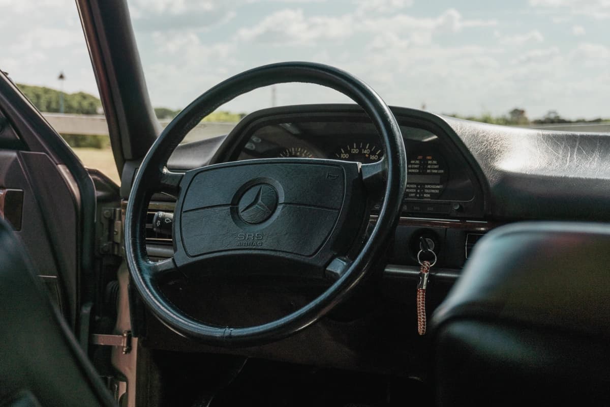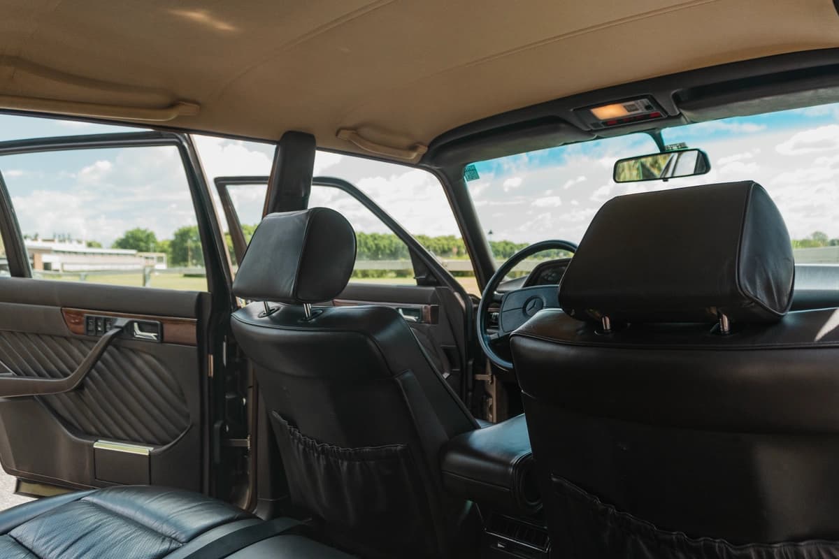 En su interior, este W126 demuestra por qué la etiqueta “S” siempre significó “el mejor”. El cuero, los paneles, las alfombras, la madera, los comandos: todo está impecable y sin signos de desgaste prematuro. Los asientos eléctricos con memoria funcionan correctamente, al igual que los calefaccionados delanteros y traseros. El asiento trasero reclinable eléctricamente también está operativo. La unidad cuenta con doble airbag, ABS, computadora de a bordo con calculador de ruta y cierre centralizado. El stéreo original Becker está incluido pero sin funcionar. No obstante, se le entregará funcionando como corresponde al ganador de la subasta.