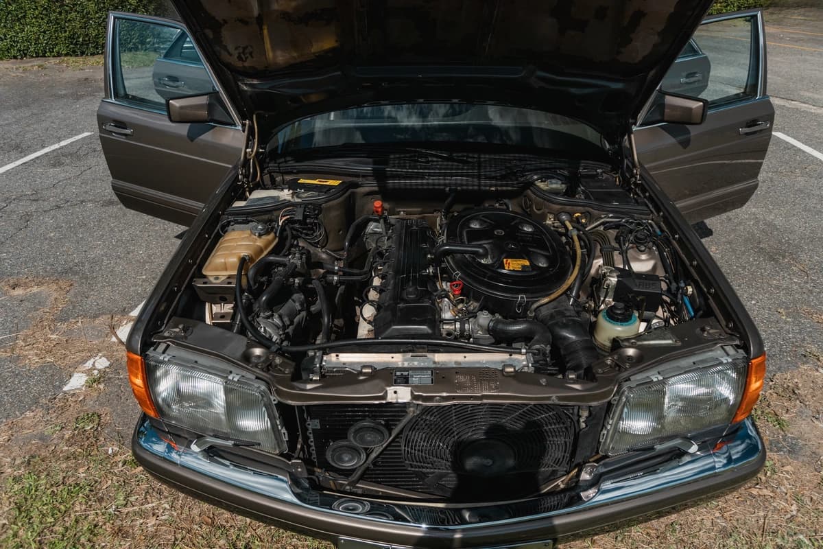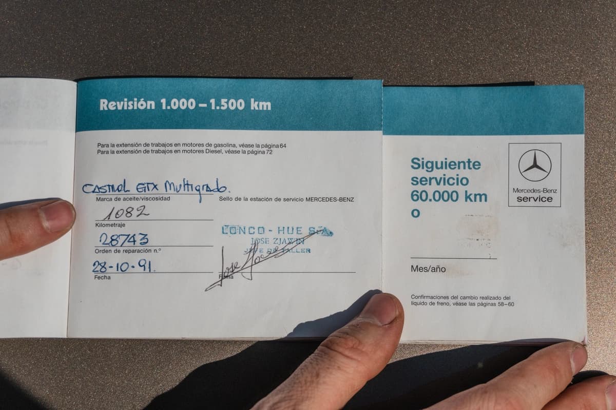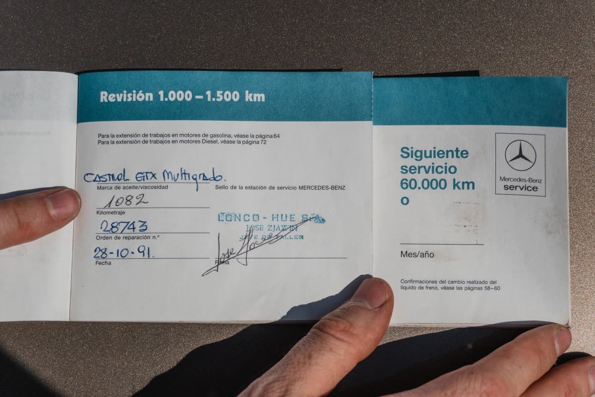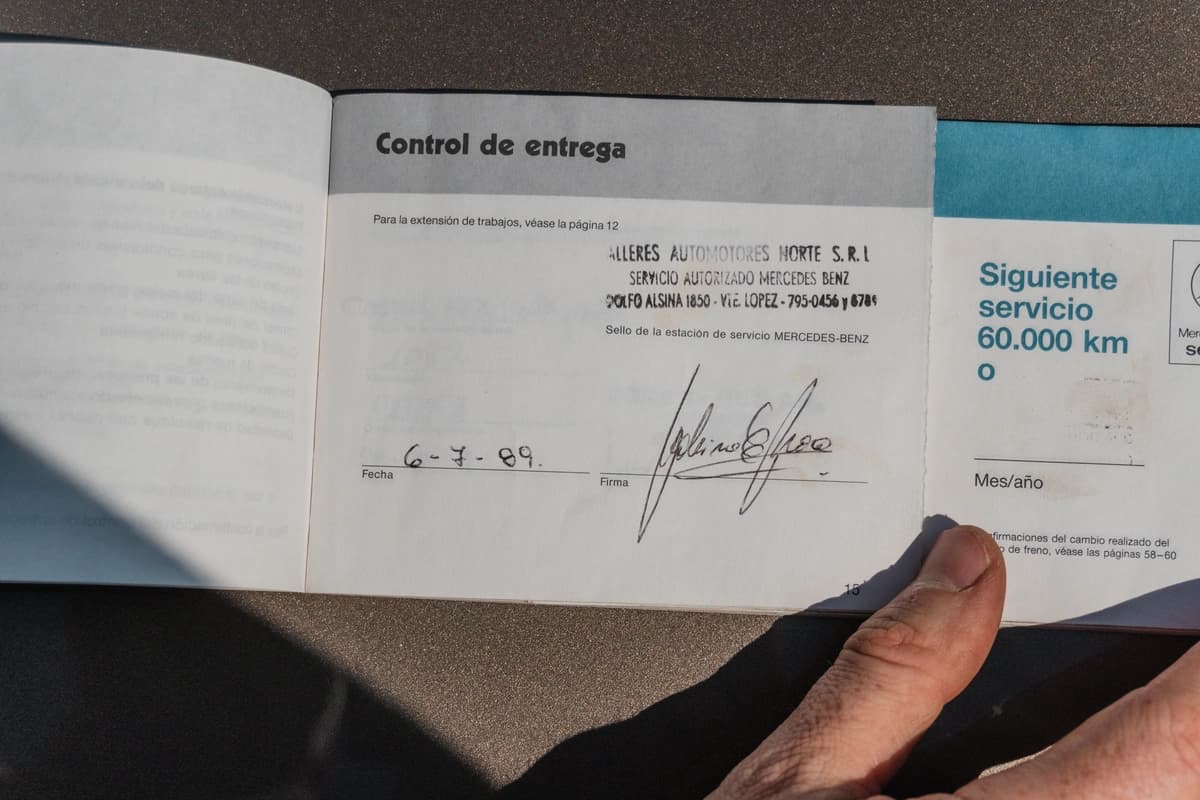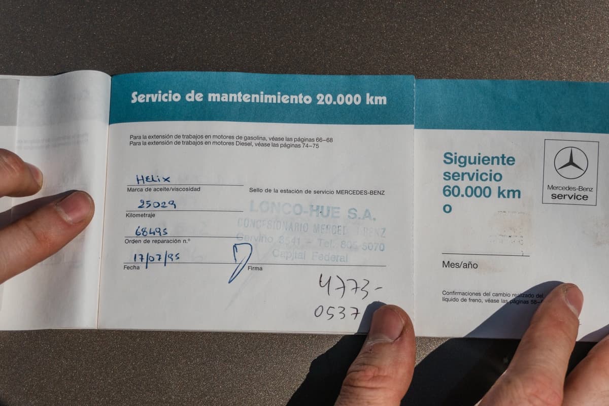 En materia mecánica, el último servicio se realizó hace apenas 2.000 km y fue uno de los más completos posibles para un W126. Se cambiaron todos los aceites —motor, caja automática y diferencial— junto con todos los filtros correspondientes. Recibió también un juego de bujías nuevas, una bomba de agua recién instalada y un repaso integral del sistema de inyección, incluyendo un regulador de presión de combustible nuevo. Se reemplazaron mangueras, se colocó una correa Poly-V nueva y se realizó un service completo del aire acondicionado. A esto se suman las cuatro cubiertas nuevas, 0 km, montadas en la medida original del modelo. No se escatimó en absolutamente nada: cada intervención fue pensada para preservar la experiencia de conducción exactamente como Mercedes-Benz la concibió para este 300SEL.