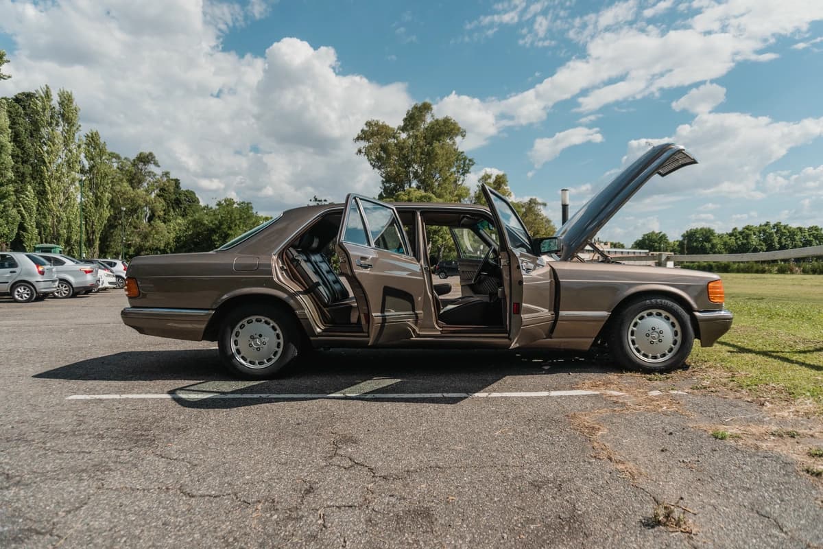 Este Mercedes-Benz 300SEL de 1989 nació para uso diplomático y perteneció a la Embajada Sirio-Libanesa, lo que explica su bajo kilometraje, su vida tranquila y la presencia de numerosos opcionales originales que eran muy poco frecuentes en autos destinados al mercado local argentino. Se trata de una unidad exquisitamente conservada, con su estética completamente íntegra y una presencia imponente, reforzada por una combinación de colores “triple brown” que difícilmente se vuelva a ver.