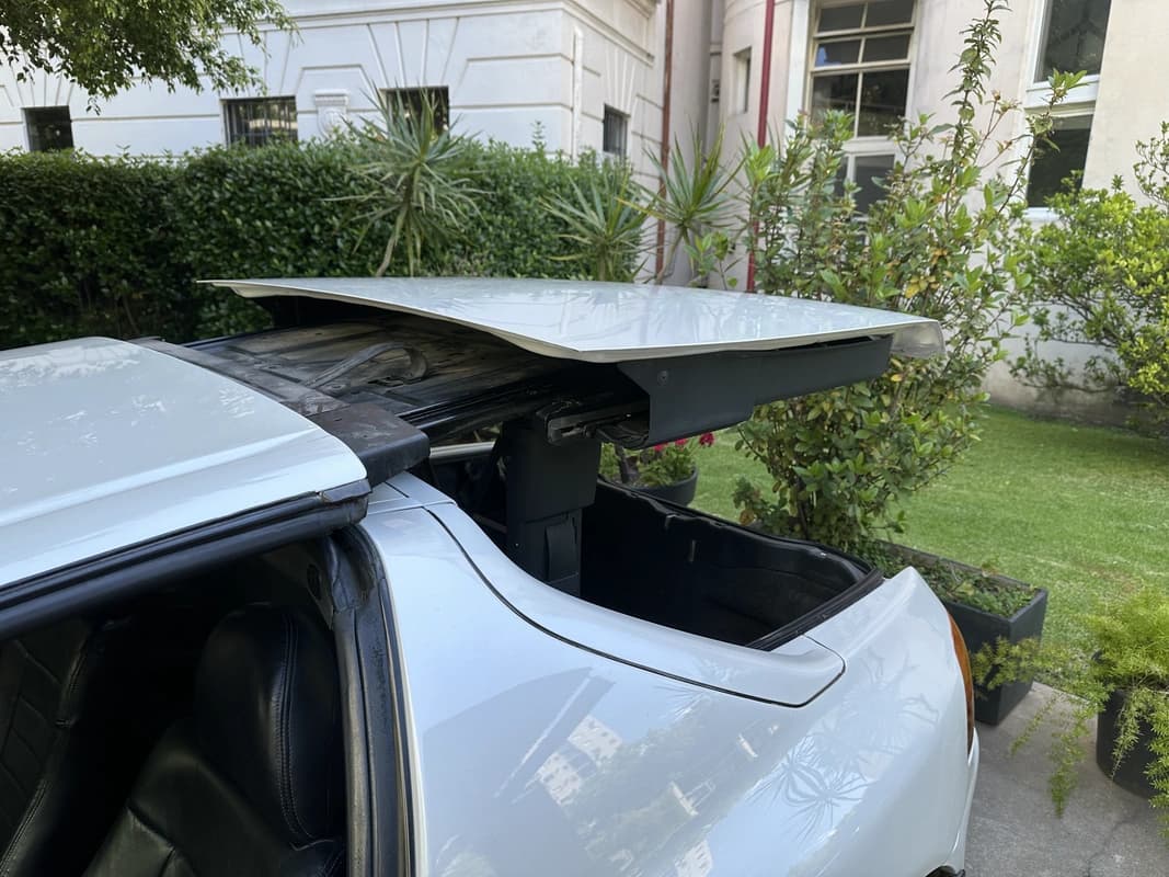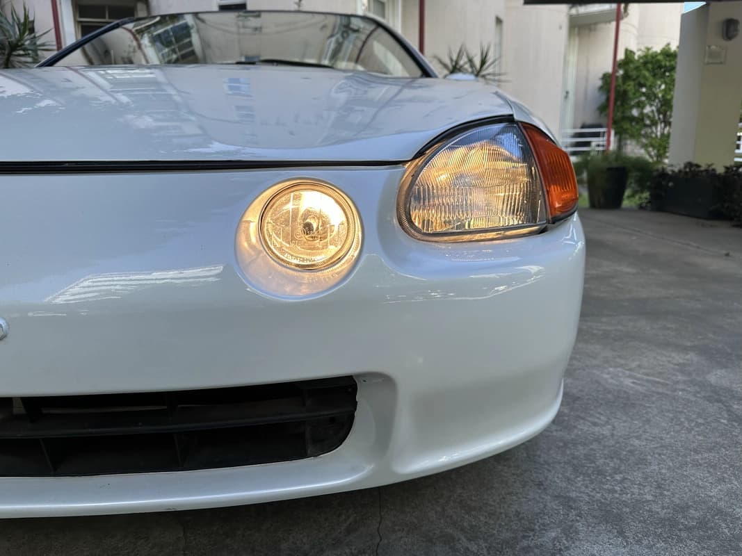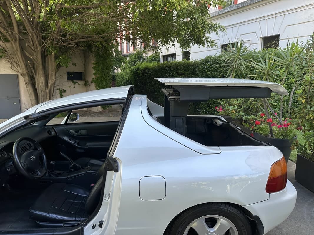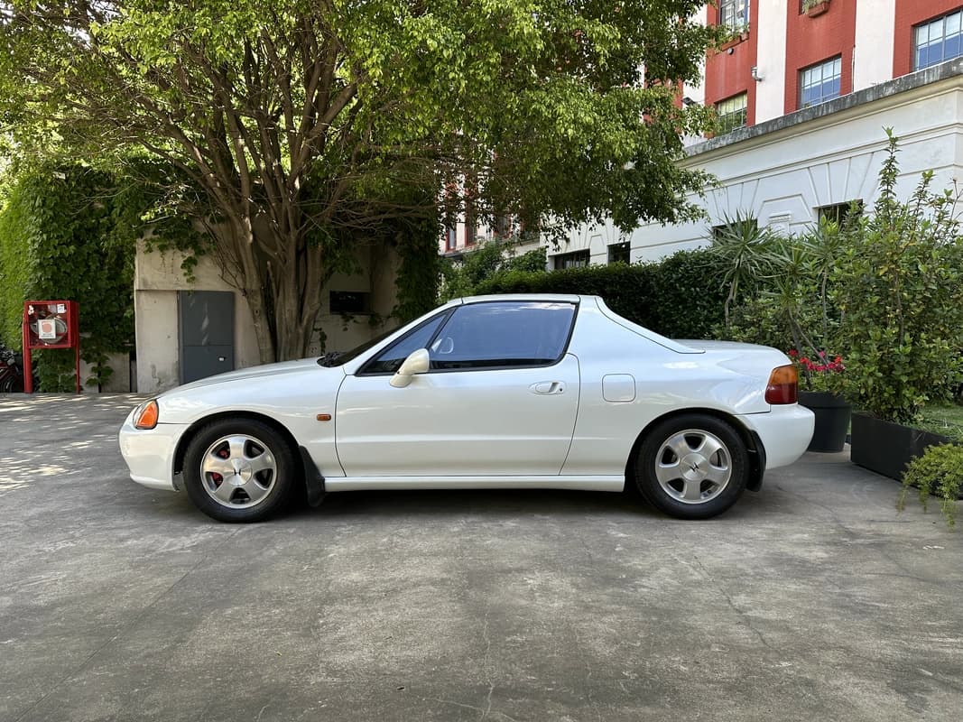 La carrocería fue intervenida en su totalidad, incluyendo chapa, correcciones, ajustes y un repintado completo en Mineral White. La terminación es pareja en todo el vehículo y no presenta óxido en ningún sector. La capota rígida (tipo targa) desmontable se encuentra en muy buen estado y mantiene el atractivo clásico del diseño original del CRX del Sol.