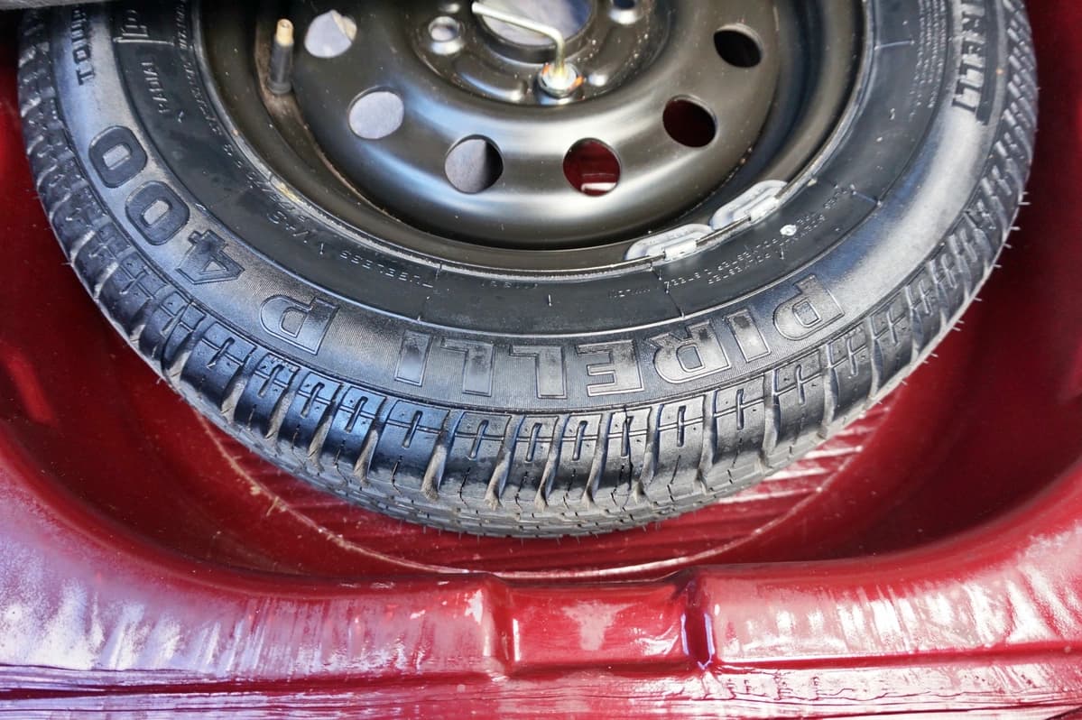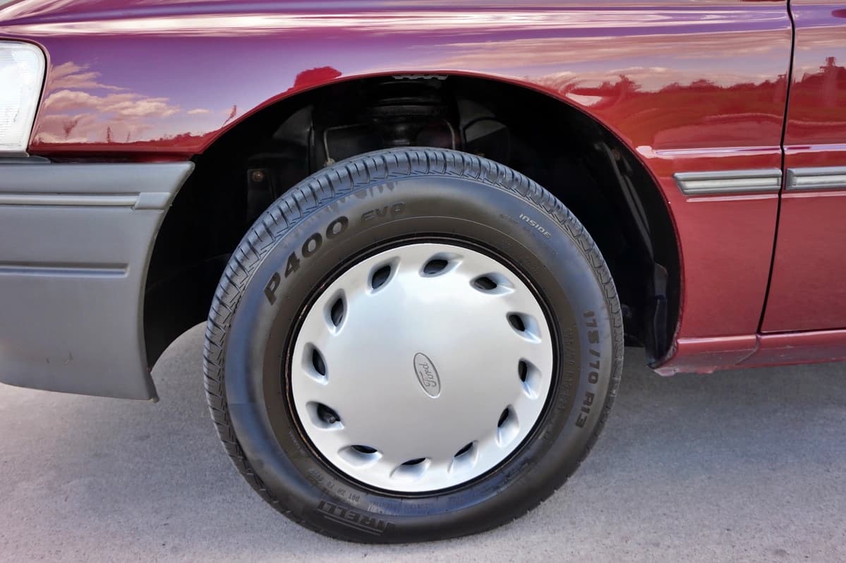 Los elementos de rodado cuentan con algunas particularidades que solo aparecen en autos realmente preservados. El auxilio Pirelli original nunca tocó el suelo, las dos cubiertas traseras son también las originales de fábrica y aún conservan textura, inscripciones y detalles propios de neumáticos que jamás se reemplazaron. Las delanteras fueron cambiadas recientemente por seguridad, también por neumáticos Pirelli, que todavía tienen los “pelitos” de fábrica. El conjunto transmite un comportamiento sólido, sin vibraciones ni ruidos, manteniendo esa sensación de estar manejando un Orion nuevo en 1996.