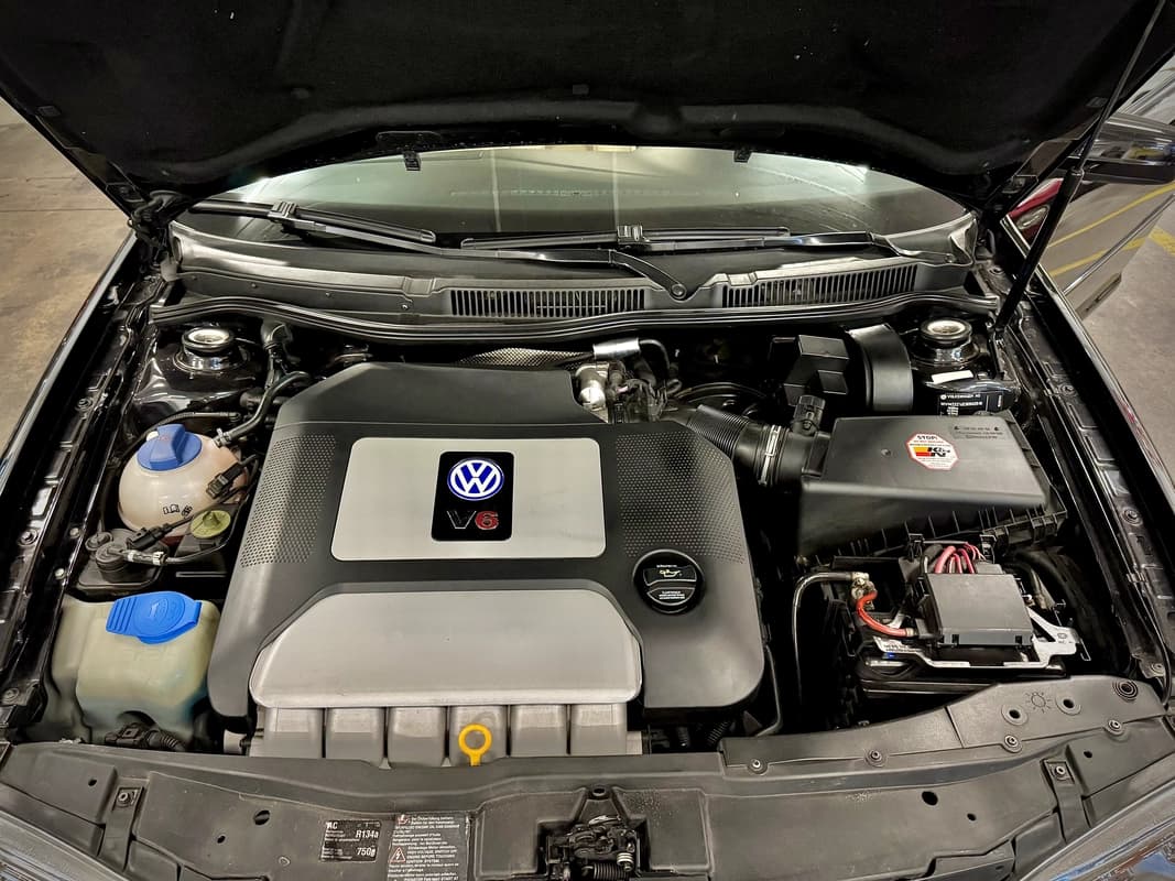 Bajo el capot vive el famoso VR6 2.8 litros, atmosférico, con alrededor de 204 HP, asociado a tracción integral 4Motion. Un motor célebre por su entrega de par, su suavidad y su durabilidad. Acelera fuerte desde bajas vueltas, estira con carácter y suena como muy pocos seis cilindros compactos saben hacerlo.