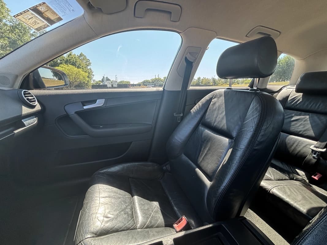 El interior conserva su configuración original de fábrica, con tapizados de cuero y sin modificaciones. Presenta un detalle conocido en estos modelos: parpadeo en las pantallas de información del tablero, algo que no afecta el funcionamiento del resto de los instrumentos ni el uso diario del vehículo. Todo lo demás opera con normalidad, manteniendo la lógica y ergonomía típicas de Audi.