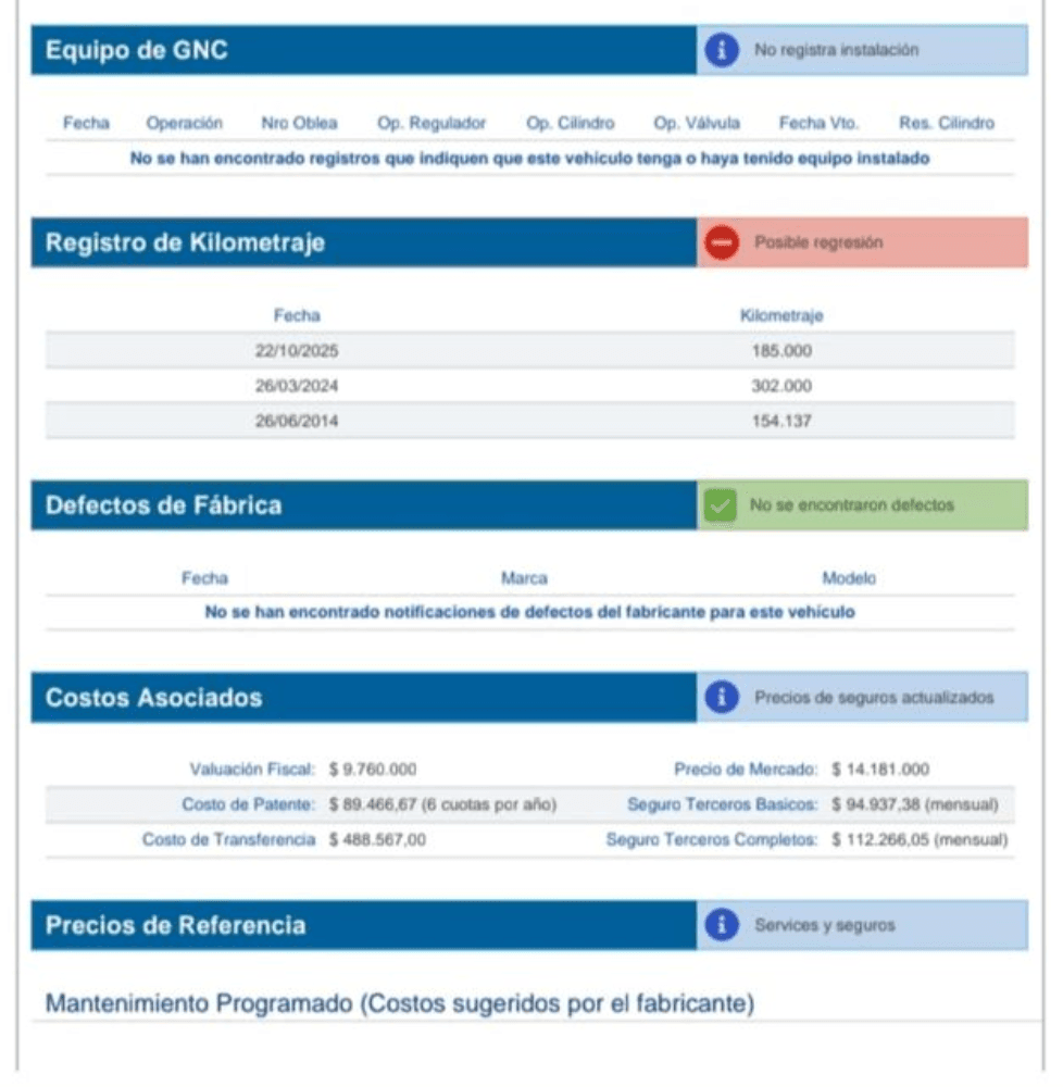 El odómetro acusa erróneamente 185.311 kilómetros, los cuales no son reales, ya que el kilometraje real es de aproximadamente 302.000 km. El vendedor, a su vez, indica que el motor fue reconstruido íntegramente hace unos 10.000 km y que los cuatro inyectores habrían sido renovados a nuevo, lo que —de acuerdo a lo informado— dejó la mecánica en excelente estado operativo. También se menciona que en los últimos meses se habrían realizado trabajos relevantes, incluyendo service de motor y caja automática, cambio de amortiguadores traseros, reemplazo de la distribución y bomba de agua.